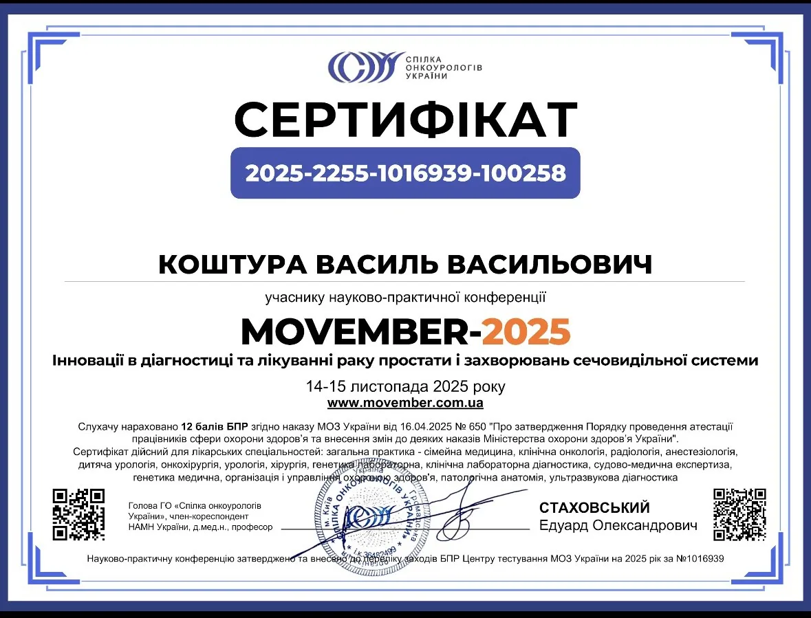 - 2016 р. – Тематичне удосконалення “Онкоурологія”;