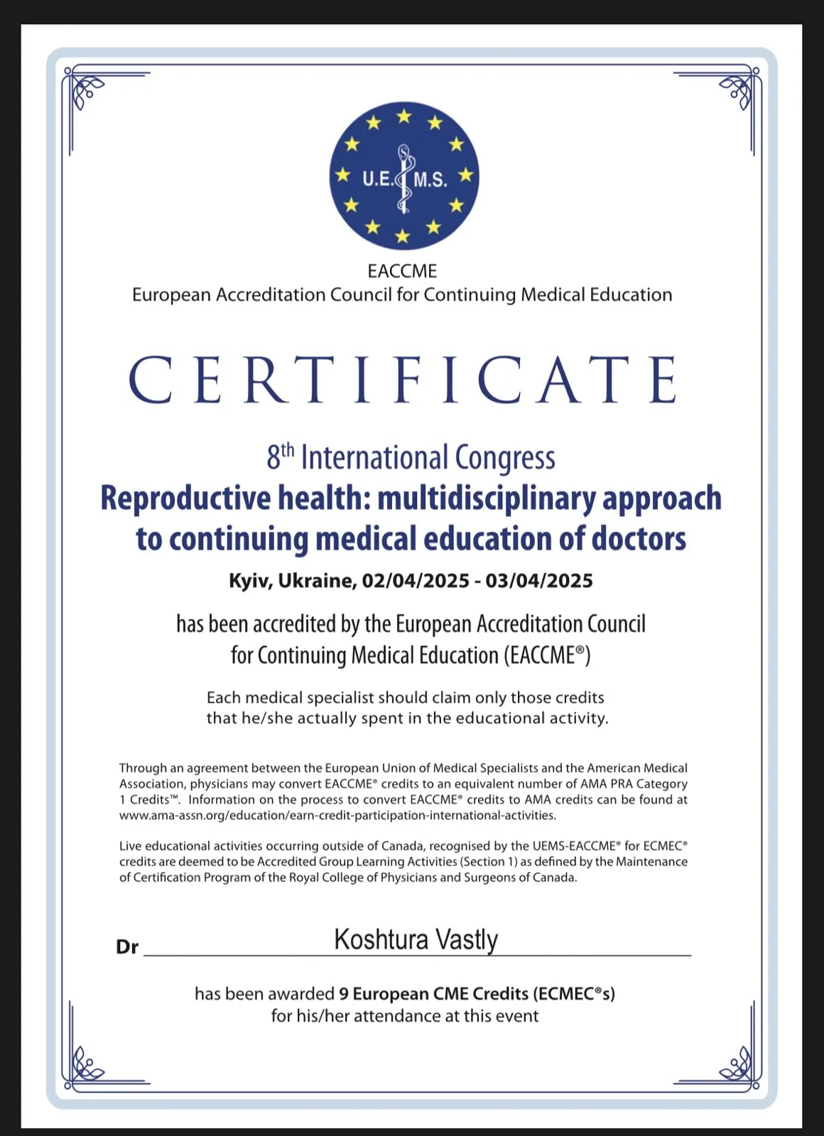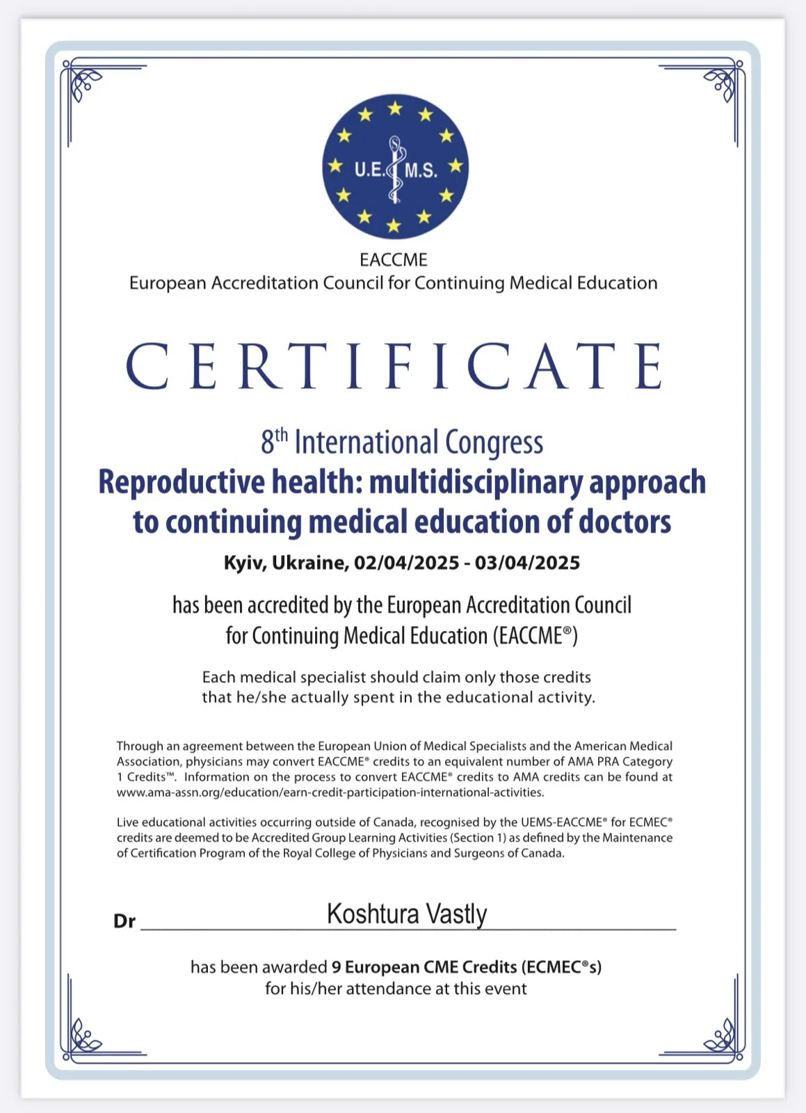- 2016 р. – Тематичне удосконалення “Чоловіче безпліддя”;