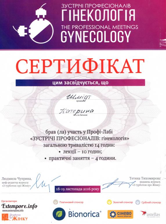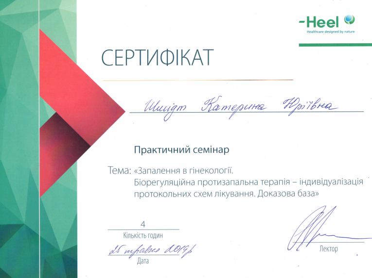 - 2020 р. – спеціалізація “Гістероскопія”;