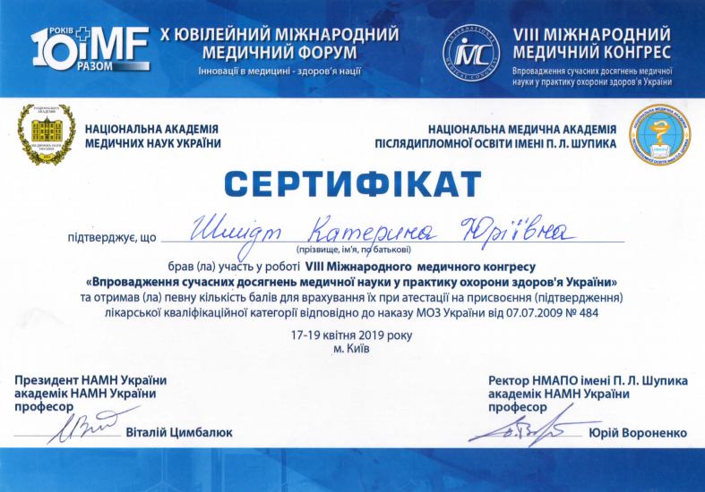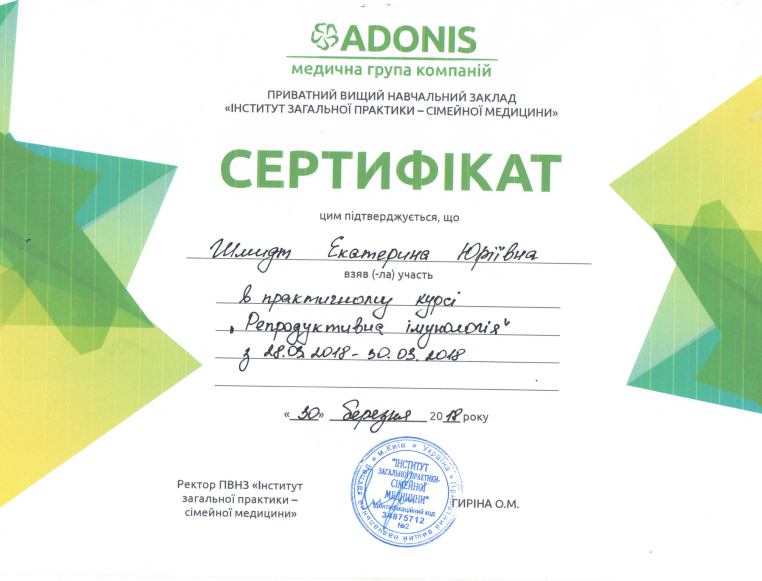 - 2021 р.- курси тематичного удосконалення “Плазмотерапія в гінекології”.