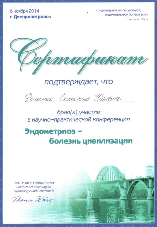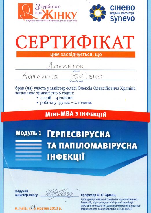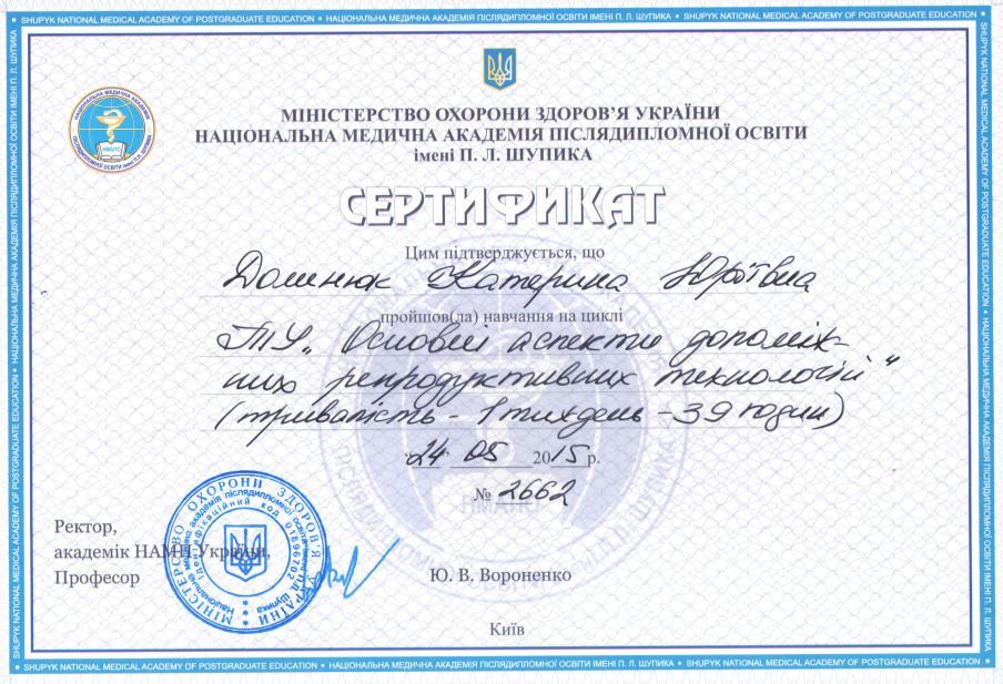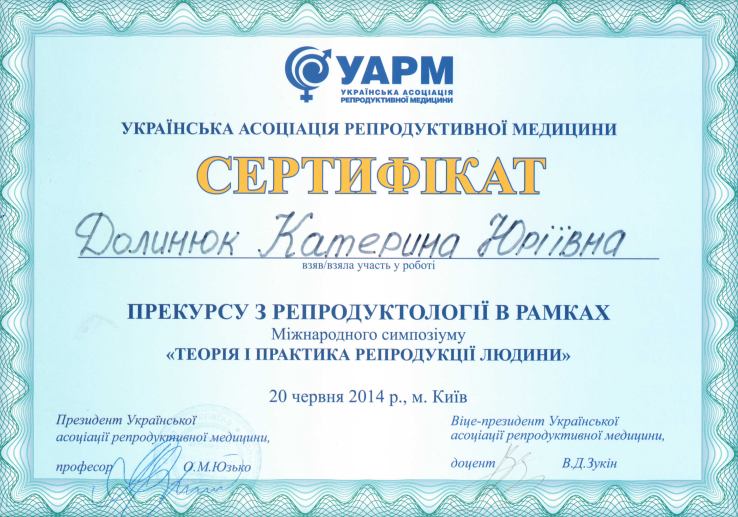 - 2013 р. – курси тематичного удосконалення лікарів «Репродуктологія»;