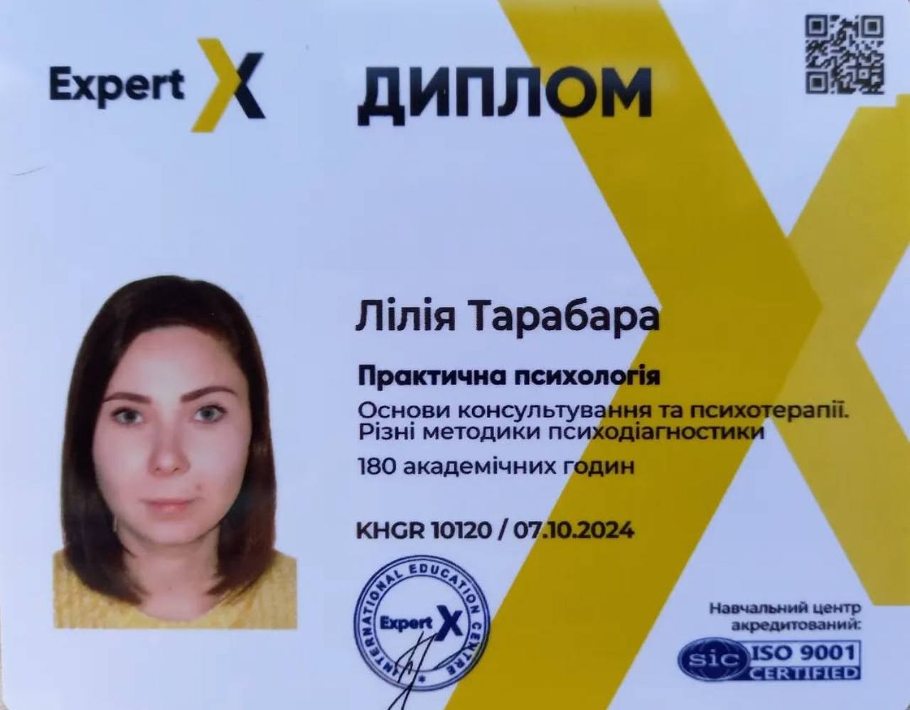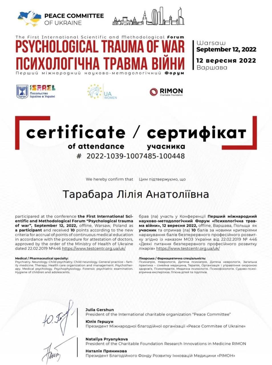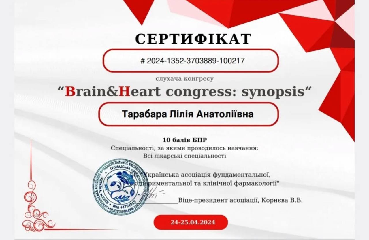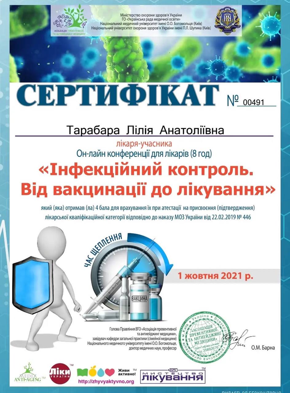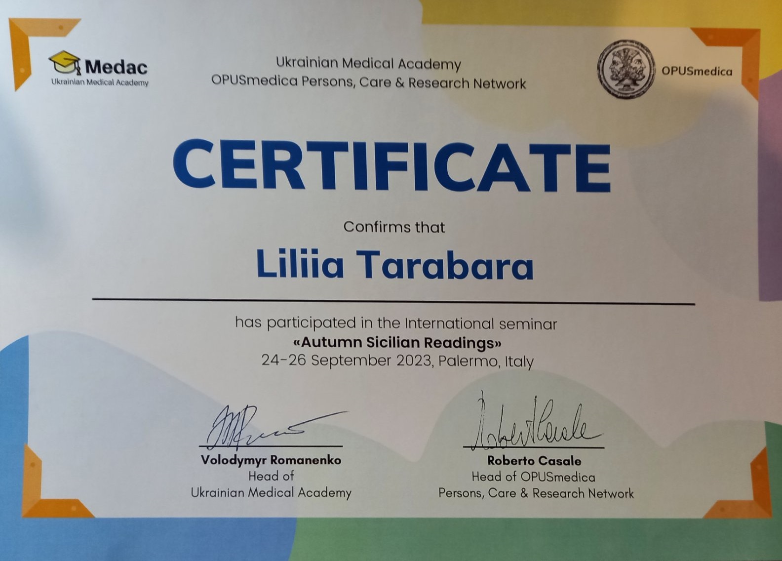 - 2017 р. – ДЗ “Дніпропетровська медична академія” МОЗ України, спеціалізація “Неврологія”.