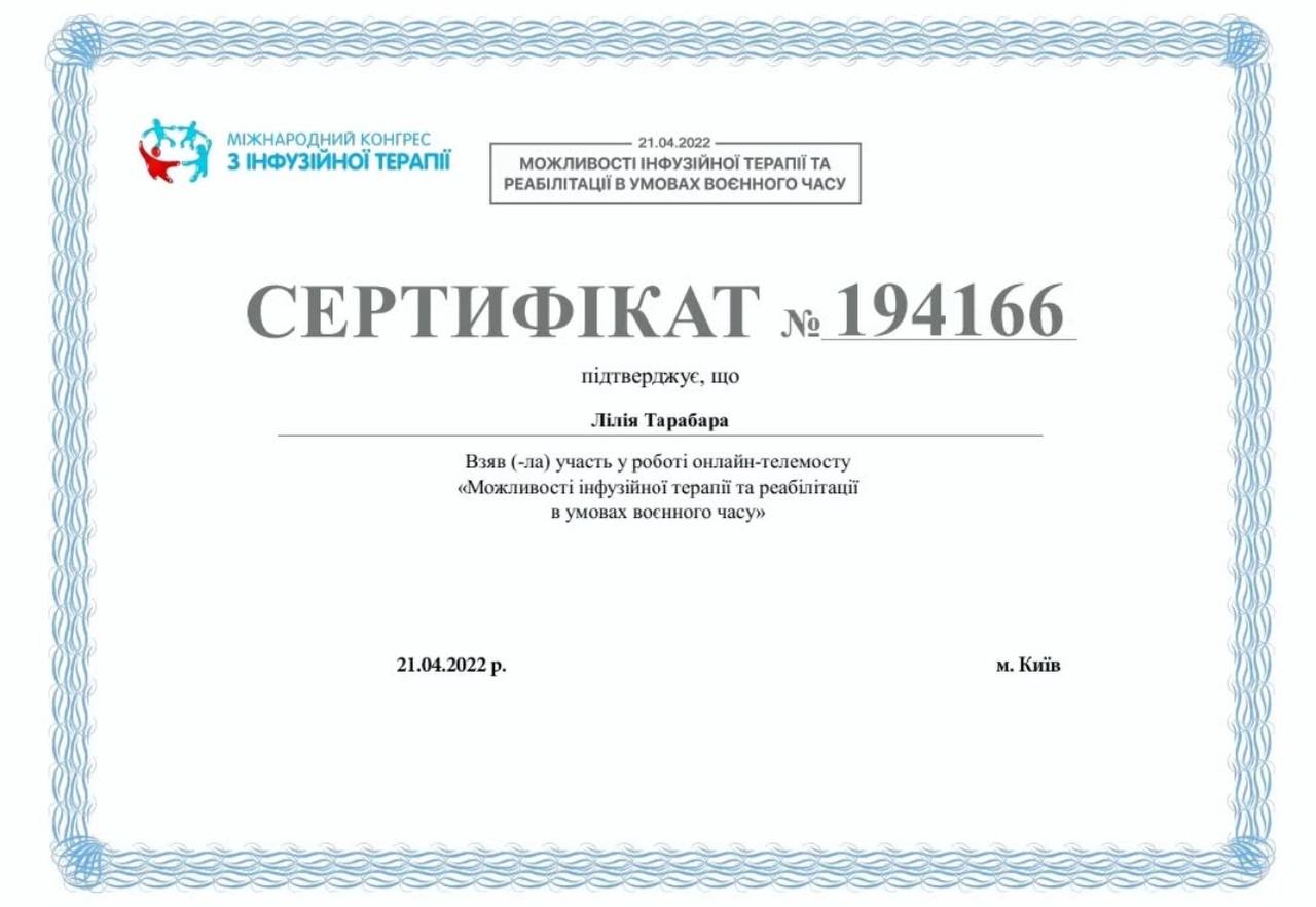 - з 2022 р.по теперішній час – ТОВ “АВРОРА ДРТ”, лікар-невропатолог.