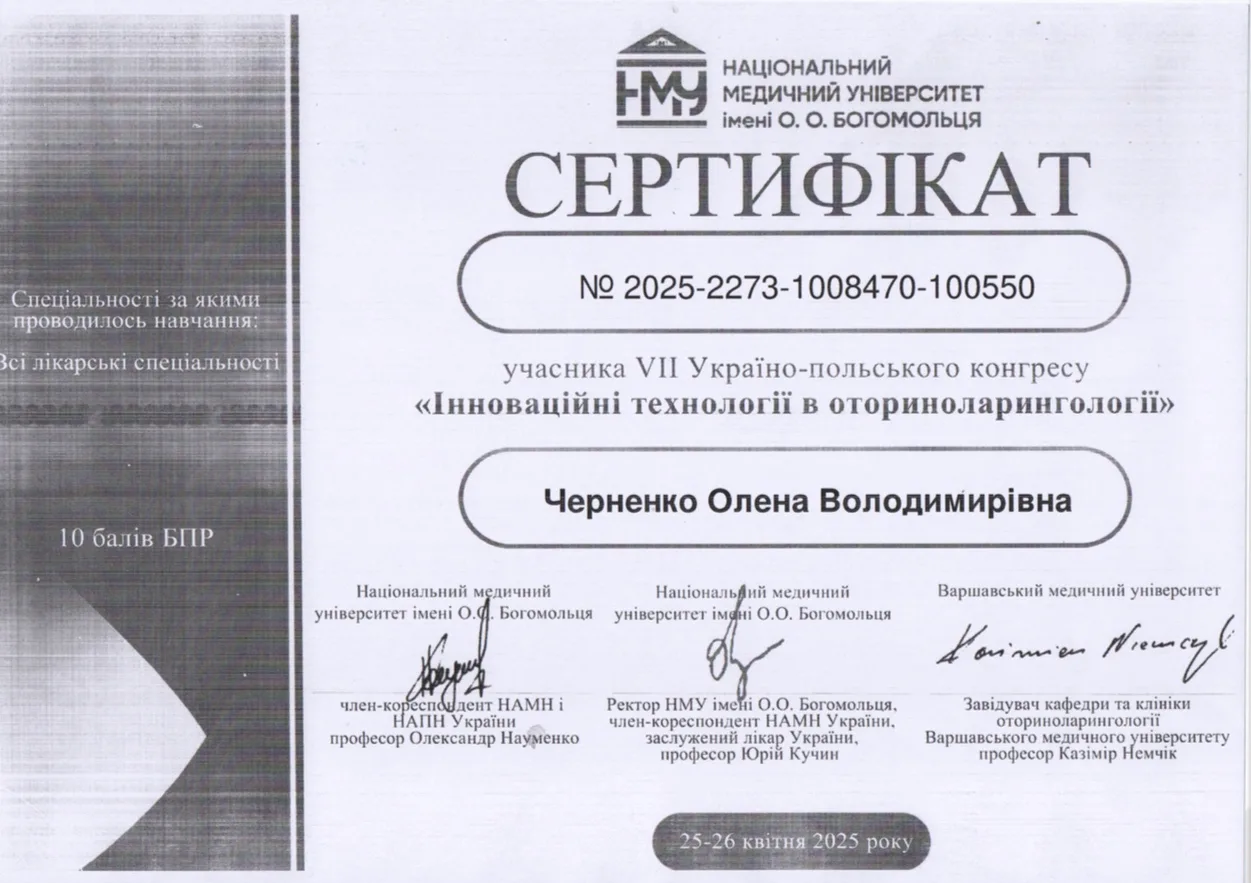 - 1989 г. – ГУ “Днепропетровская медицинская академия” МЗ Украины, специальность “Лечебное дело”;