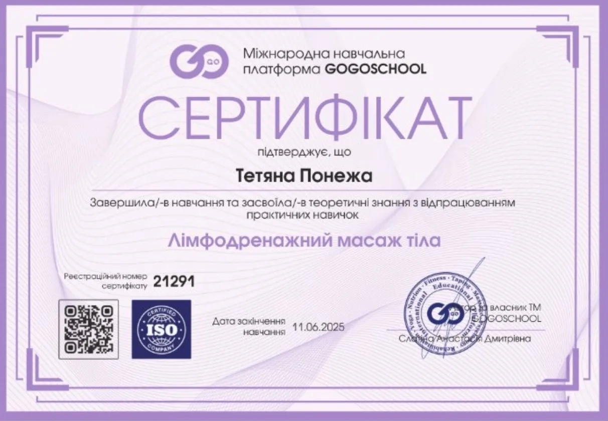 - с 2025 г. по настоящее время – ООО “АВРОРА ДРТ”, массажист, специалист по физической реабилитации, медицинская сестра.